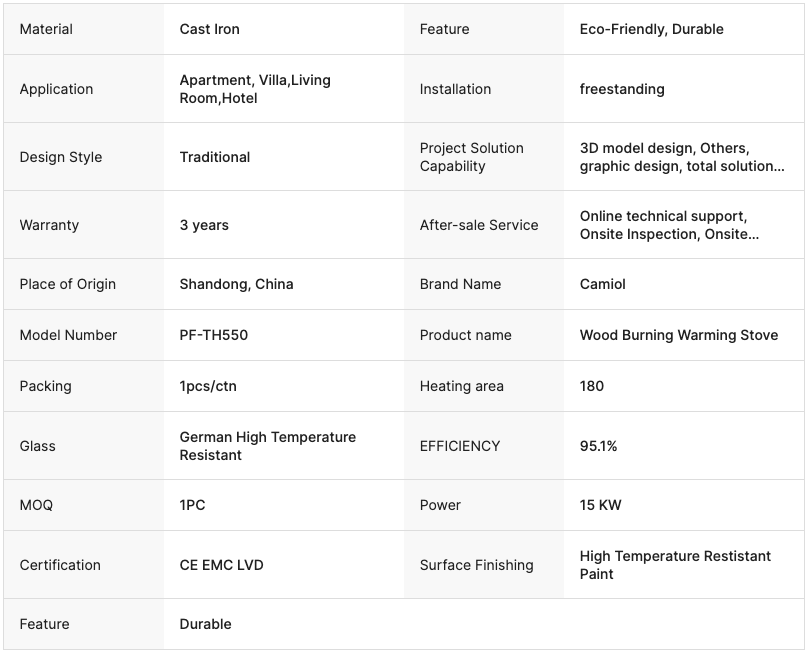 European Quality Cast Iron Fireplace Classic Design Gas Wood-Burning Fire Place Long-Lasting Freestanding for Villas Firewood